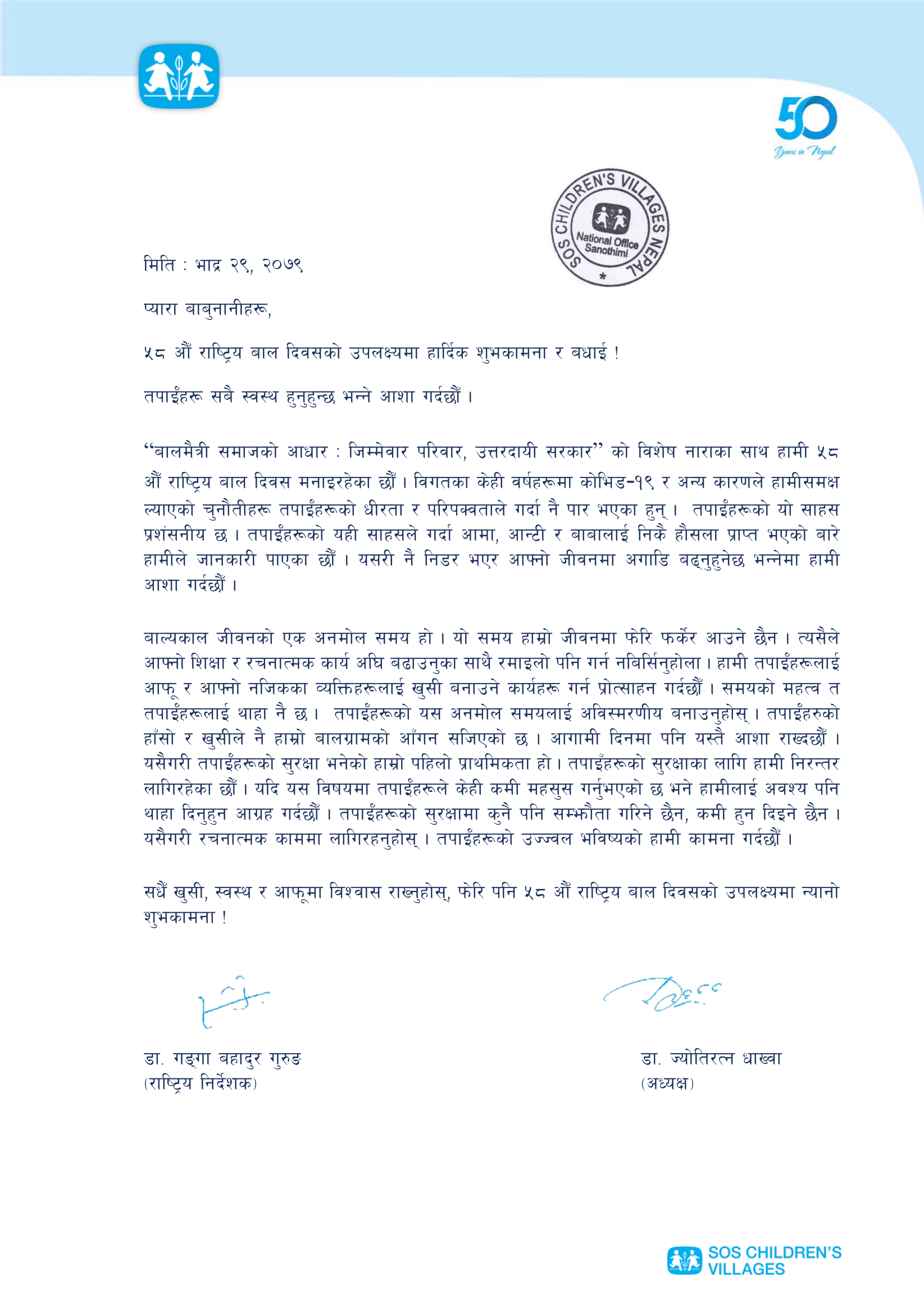 STATEMENT – September 14 2022 58th National Children's Day greetings message from the President and the National Director